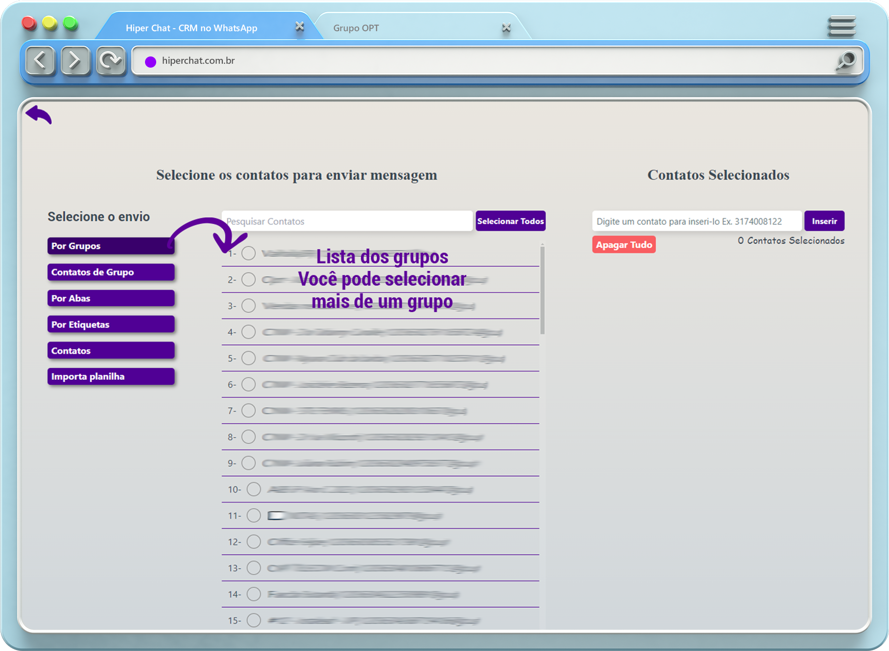 Com a Licença Premium, você tem a vantagem de realizar envios em massa ilimitados para contatos, listas ou grupos.